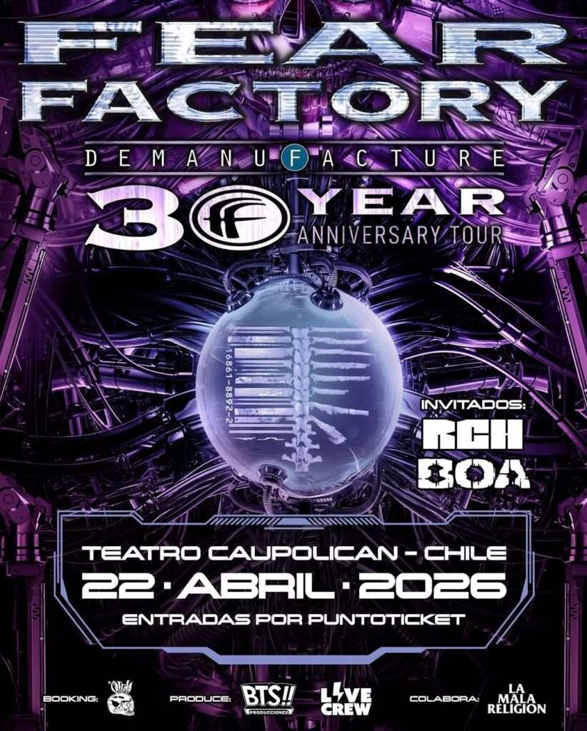 FEAR FACTORY vuelve a Santiago con una fecha histórica: la banda celebrará los 30 años de su icónico álbum DEMANUFACTURE con un concierto imperdible el miércoles 22 de abril de 2026 en el Teatro Caupolicán.
