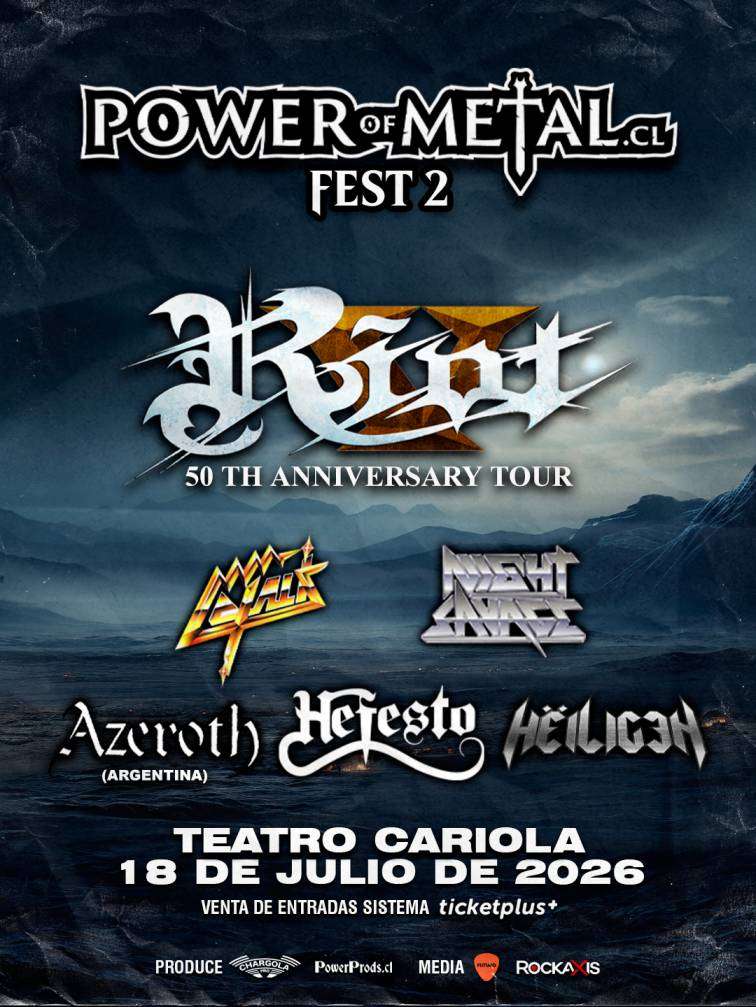 ¡Buenas noticias para los fanáticos del heavy/power! Tras un sólido debut durante 2025, POWEROFMETAL.CL FEST confirmó oficialmente su segunda edición, prometiendo nuevamente una jornada extensa, intensa y cargada de himnos. La cita será el 18 de Julio en el TEATRO CARIOLA y tendrá como gran atracción el esperado regreso de RIOT V a Chile, en el marco de la celebración de sus 50 años de trayectoria.